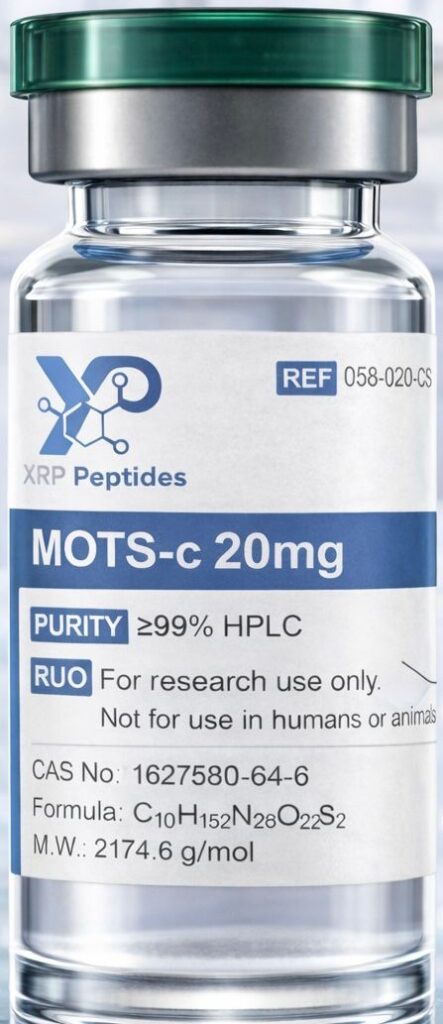 MOTS-c é um peptídeo composto por 16 aminoácidos, codificado pelo DNA mitocondrial. Ele ativa a AMPK para regular vias metabólicas como a oxidação de ácidos graxos e a gliconeogênese, auxiliando na manutenção da estabilidade da glicemia, na prevenção da obesidade e da resistência à insulina. O MOTS-c também pode ativar vias de sinalização de estresse para aumentar a resistência celular ao estresse. Além disso, possui propriedades anti-inflamatórias e antioxidantes, inibe mediadores inflamatórios e reduz o estresse oxidativo, oferecendo uma estratégia de prevenção para doenças cardiovasculares e diabetes. Ademais, o MOTS-c pode interagir com fatores de transcrição e elementos regulatórios no DNA nuclear para regular diretamente a expressão do DNA nuclear.