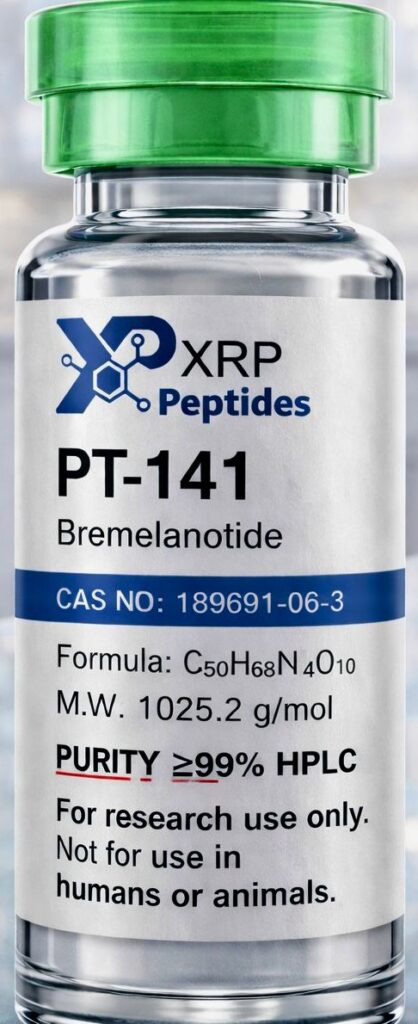 PT 141 (Bremelanotídeo) é um agonista sintético do receptor de melanocortina, um heptapeptídeo cíclico derivado do α-MSH. Atua na disfunção sexual ativando as vias centrais MC3R/MC4R. Em homens, melhora a função erétil através do relaxamento da musculatura lisa do corpo cavernoso. Em mulheres, aumenta o desejo sexual por meio da regulação da libido mediada pelo SNC. Seu mecanismo de ação contorna as vias tradicionais dos inibidores da PDE5, tornando-o eficaz em casos resistentes à PDE5. O PT 141 demonstrou início de ação rápido, em poucos minutos após a administração. Avaliações pré-clínicas e clínicas mostraram que, em geral, é bem tolerado.