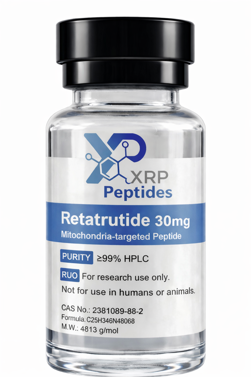 A retatrutida é um agonista triplo de receptores que atua nas vias do GLP-1, GIP e glucagon. Ela exerce um efeito sistêmico no equilíbrio metabólico geral, regulando simultaneamente a ingestão de energia, o gasto energético e a flexibilidade metabólica. Seu mecanismo sinérgico multialvo a torna uma ferramenta valiosa para o estudo de redes metabólicas complexas e mecanismos de regulação energética, apresentando um potencial significativo na pesquisa sobre obesidade e regulação metabólica.