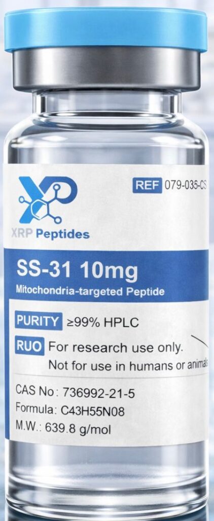 O SS-31 é um composto tetrapeptídico que atua nas mitocôndrias, cujo nome completo é Elamipretida. Composto por fenilalanina, glutamina, lisina e fenilalanina, apresenta propriedades lipofílicas que lhe permitem penetrar nas membranas celulares e se localizar na membrana mitocondrial interna. Ao interagir com os fosfolipídios na membrana mitocondrial interna, estabiliza a estrutura mitocondrial, mantém o potencial de membrana e reduz os danos mitocondriais induzidos pelo estresse oxidativo. Ativa a atividade do complexo da cadeia respiratória, promove a produção de ATP e melhora o metabolismo energético celular. Inibe a liberação de fatores pró-inflamatórios, mitigando assim as respostas inflamatórias desencadeadas por lesões mitocondriais. O SS-31 demonstra eficácia em células miocárdicas, neurônios e outros tipos celulares, melhorando a lesão de isquemia-reperfusão miocárdica e a disfunção mitocondrial em doenças neurodegenerativas.