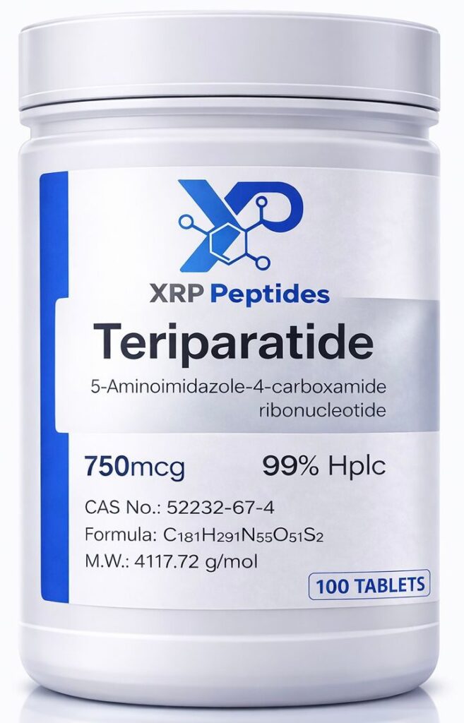 A teriparatida é um análogo recombinante do hormônio da paratireoide humana (PTH) composto pelos primeiros 34 aminoácidos do hormônio da paratireoide humana. Ela modula o metabolismo ósseo mimetizando as ações fisiológicas do hormônio da paratireoide endógeno. Ativa intermitentemente o receptor do hormônio da paratireoide (PTH1R), promovendo a proliferação e diferenciação dos osteoblastos, ao mesmo tempo que aumenta a síntese e mineralização da matriz óssea. Isso melhora a densidade mineral óssea e a microarquitetura óssea. A teriparatida também regula o metabolismo do cálcio e do fósforo, aumentando a absorção intestinal de cálcio e mantendo níveis séricos estáveis de cálcio. A teriparatida é indicada principalmente para o tratamento da osteoporose grave, particularmente em pacientes com alto risco de fraturas, reduzindo significativamente o risco de fraturas vertebrais e não vertebrais. Também é eficaz para distúrbios que envolvem metabolismo ósseo anormal, como a osteomalácia.
