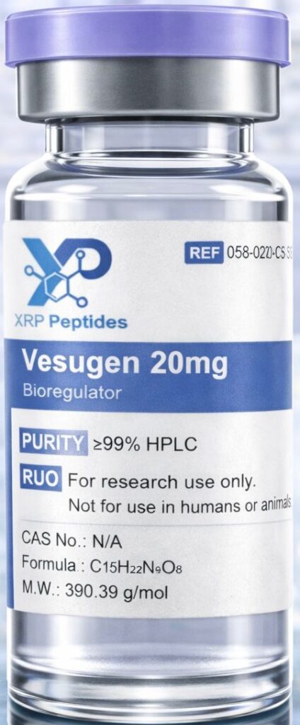 Vesugen é uma substância com potente atividade biológica e significativos efeitos antienvelhecimento. Reduz a apoptose celular e retarda o envelhecimento celular. Vesugen promove o reparo e a regeneração de células endoteliais, regula a função vascular, prevenindo doenças vasculares como hipertensão e arteriosclerose. Também protege os neurônios, aumentando sua taxa de sobrevivência e demonstrando potencial no tratamento de doenças neurodegenerativas como Parkinson e Alzheimer. Em doenças metabólicas, Vesugen melhora a sensibilidade à insulina e regula o metabolismo lipídico.