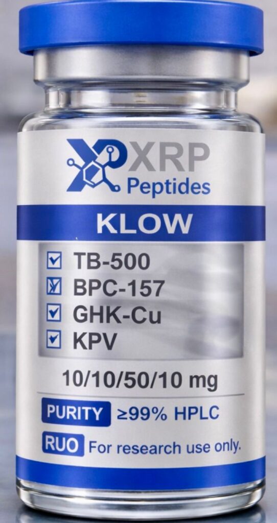 Klow é uma mistura composta por TB4, BPC-157, KPV e GHK-CU. O TB4 modula a dinâmica da actina para promover a migração celular, a angiogênese e a síntese de colágeno, auxiliando na regeneração do tecido conjuntivo; o BPC-157 regula positivamente a expressão de fatores relevantes, aumenta a angiogênese e a atividade dos fibroblastos, repara múltiplos tecidos e proporciona proteção celular; o KPV suprime fatores pró-inflamatórios, reduz a inflamação e promove o reparo da mucosa; o GHK-Cu estimula a produção de colágeno, regula a inflamação e a atividade antioxidante e auxilia no reparo tecidual. Os quatro peptídeos se complementam: o TB500 e o BPC-157 fornecem a estrutura necessária para a migração, angiogênese e formação da matriz extracelular; o KPV bloqueia o feedback negativo da inflamação; e o GHK-Cu estabiliza a ligação cruzada do colágeno e elimina radicais livres. Isso forma um ciclo fechado de “anti-inflamatório-migração-regeneração-remodelação”, permitindo que o Klow acelere significativamente o reparo, reduza as cicatrizes e restaure a função em lesões de tecidos moles, cicatrização pós-operatória, envelhecimento da pele e úlceras mucosas